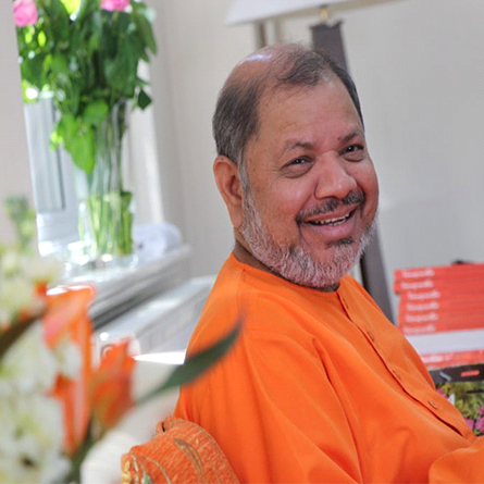 Guruji, as he is affectionately known, is a living portrait of simplicity with depth, humility with courage, and wisdom with devotion. Always jovial, smiling and welcoming, he is readily accessible and approachable to all who seek the knowledge of Vedanta from him.